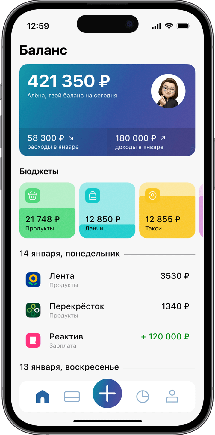 Финансовая грамотность начинается с планирования личного бюджета. Ещё грамотнее — делать это в таком удобном и красивом приложении, как наше.