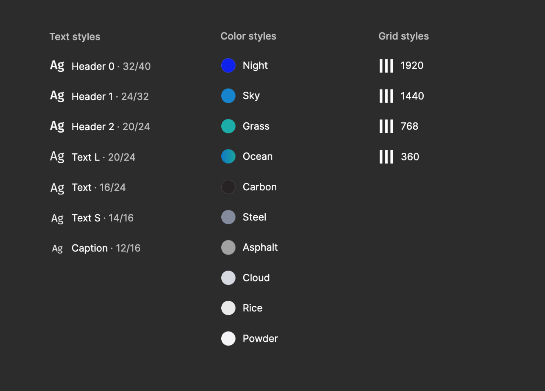 В самих макетах тоже используем все прелести, которыми наградила нас Figma. В наших проектах обязательно использование стилей: для текста, цвета, сеток и эффектов.