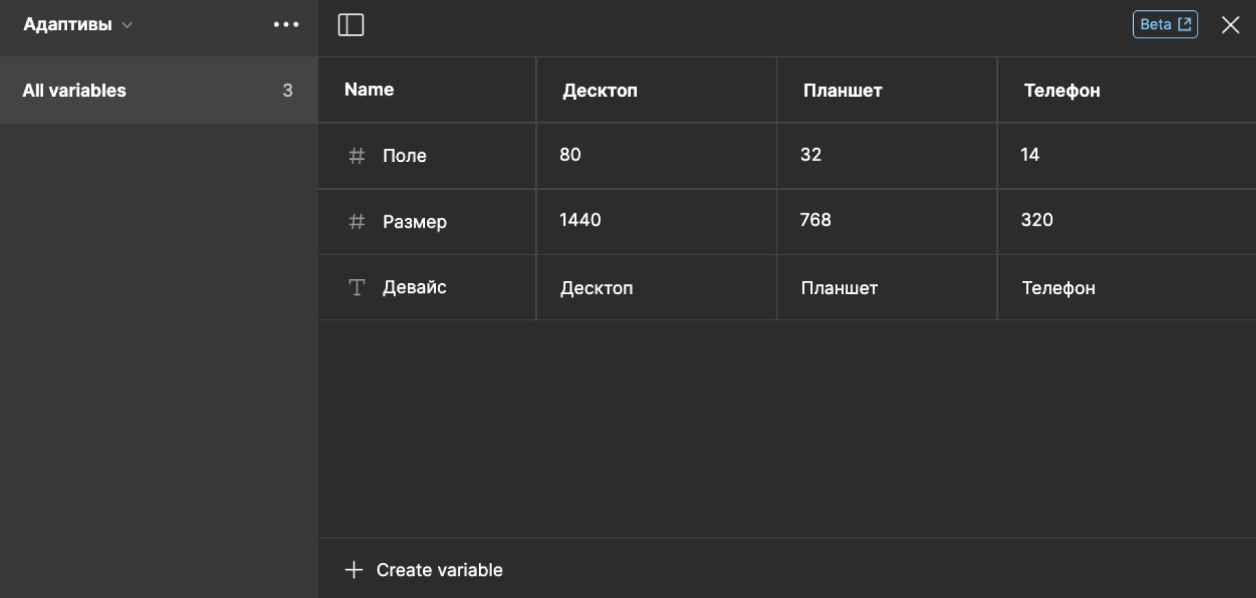 Систему отступов в макетах и её изменение на адаптивах не держим в уме, а организовали через Variables. Новая функция в Figma позволяет автоматически поддерживать систему отступов во всём проекте, на макетах для всех разрешений и девайсов.
