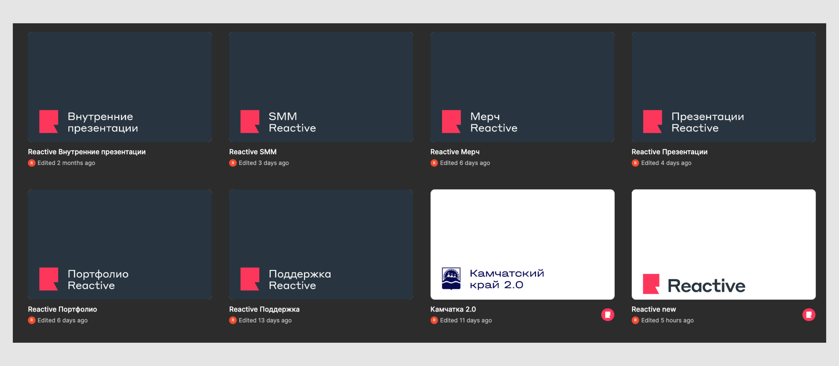 Внутренние проекты мы оформляем в нашем стиле, а клиентские — с логотипом и цветами бренда наших заказчиков.
