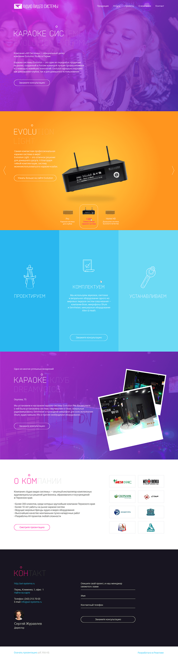 Разработать промо-сайт, который будет помогать клиенту продавать профессиональные караоке-системы Evolution.
