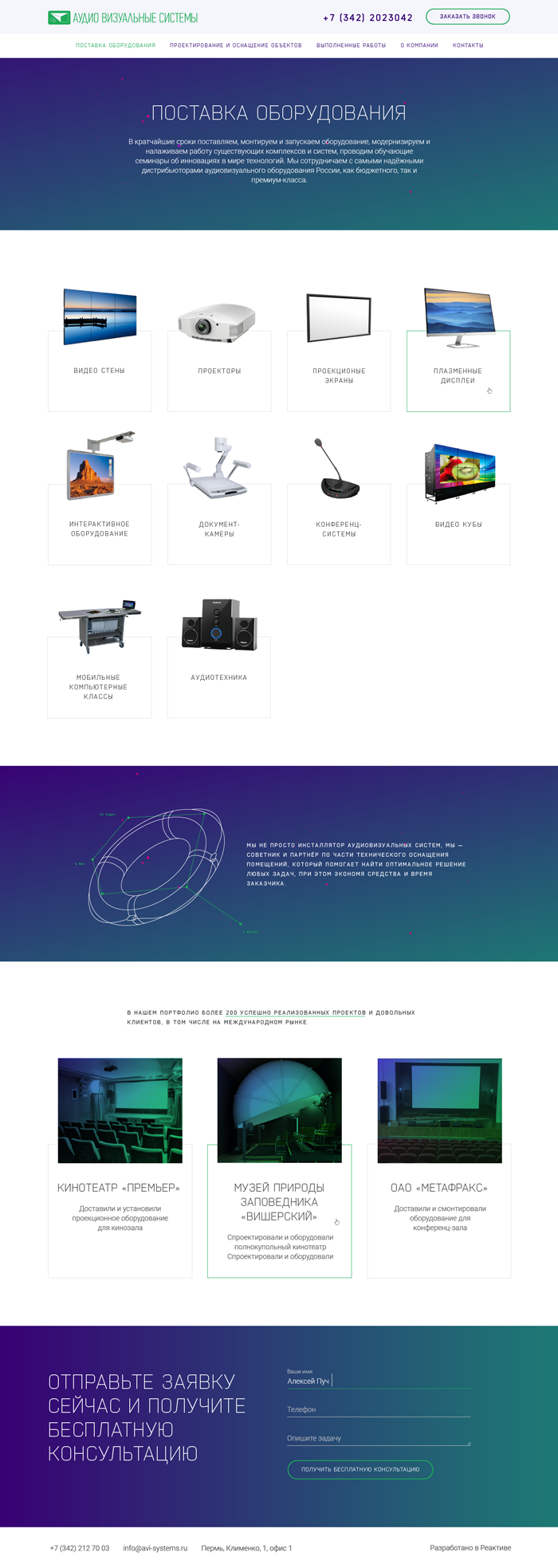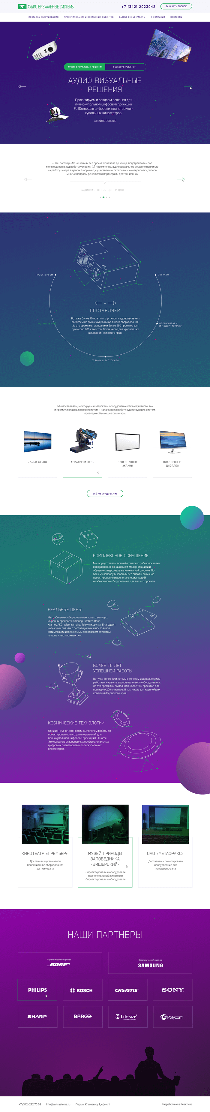 Компания «АВ-системы» является ведущим поставщиком проекционного, звукового и коммутационного оборудования, а также инсталлятором комплексных аудио визуальных решений для бизнеса, дома, образования и госучреждений в Пермском Крае.