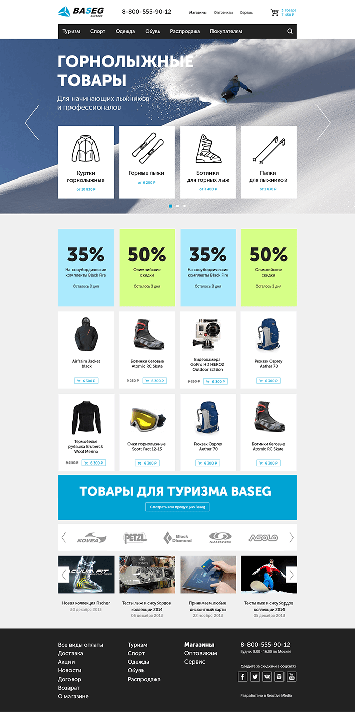 Интернет-магазин имеет большой каталог товаров, синхронизированный с базой склада. Есть набор фильтров, позволяющих удобно искать нужный товар, возможность публиковать акции компании.