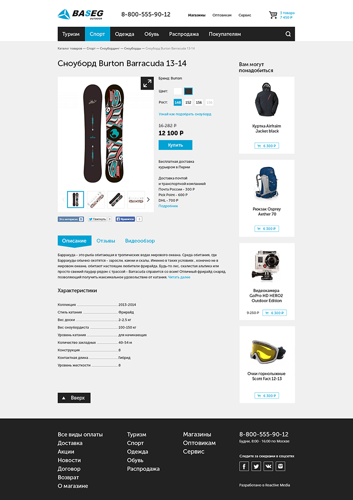 Описание товара может содержать несколько фотографий, разные цвета, размеры, подробное описание, отзывы и видеообзоры. Сразу можно рассчитать стоимость доставки.