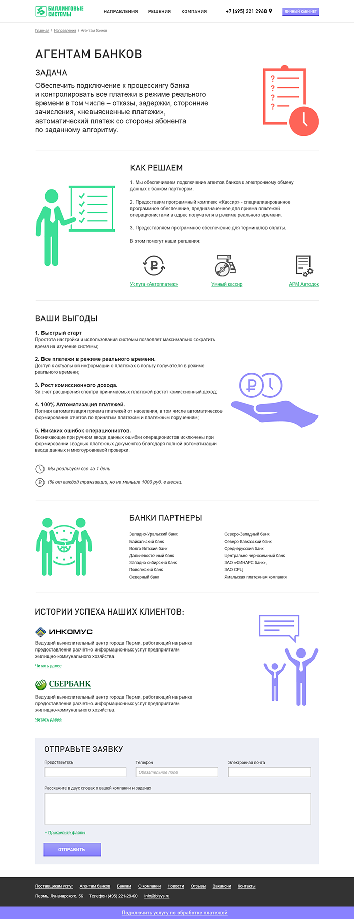 Доступно рассказать о сложной деятельности компании и её решениях поставщикам услуг, агентам банков и самим банкам. Постараться получить заявки на услуги.