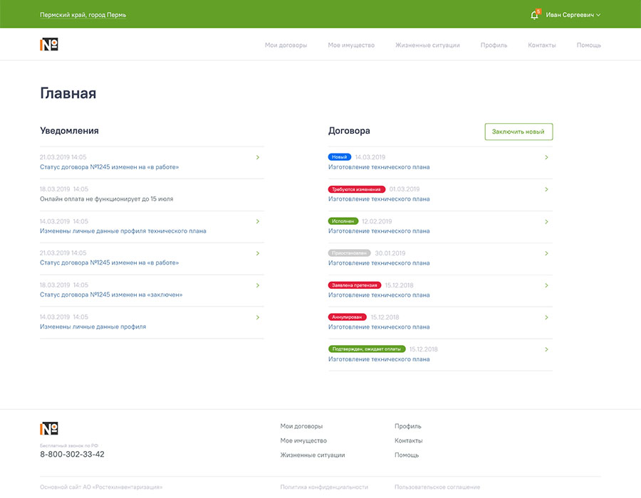 - возможность следить за процессом оказания услуги, получать уведомления об изменении статусов, взаимодействовать с БТИ по возникающим вопросам, вносить изменения, добавлять документы и т.п.;