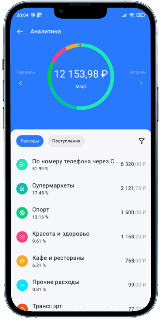 В приложение мы добавили страницу, где клиент банка мог получить аналитику по своим операциям за любой период времени и по любой комбинации фильтров: сколько потратил денег и на что, сколько получил. Сформировали списки операций, запросов, категорий и фильтров. Проработали логику, выстроили связи категорий и списков с разными комбинациями фильтров. Сделали блокировку данных, чтобы при загрузке аналитики на экране не появлялись лишние цифры.