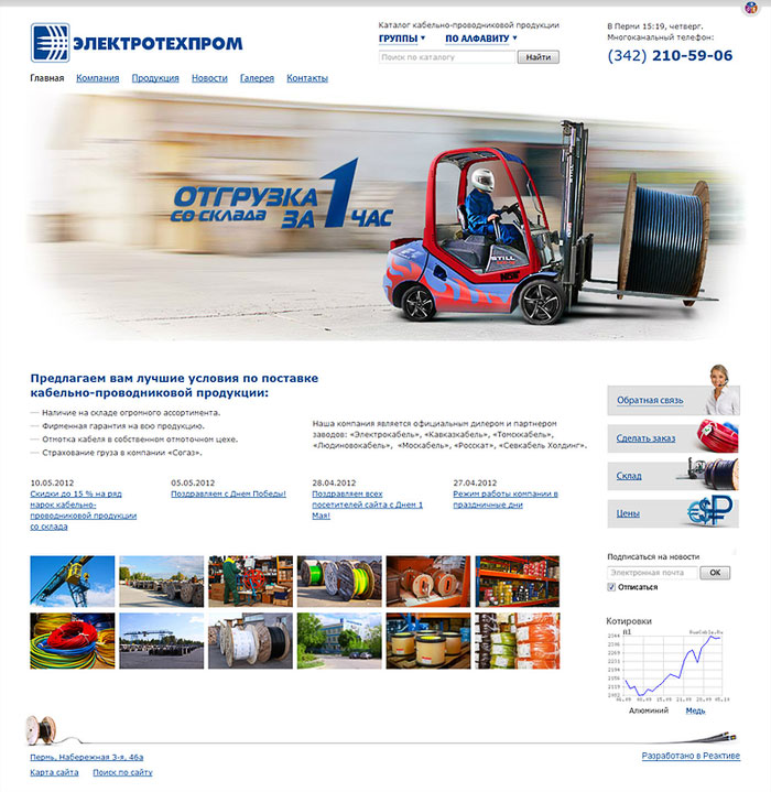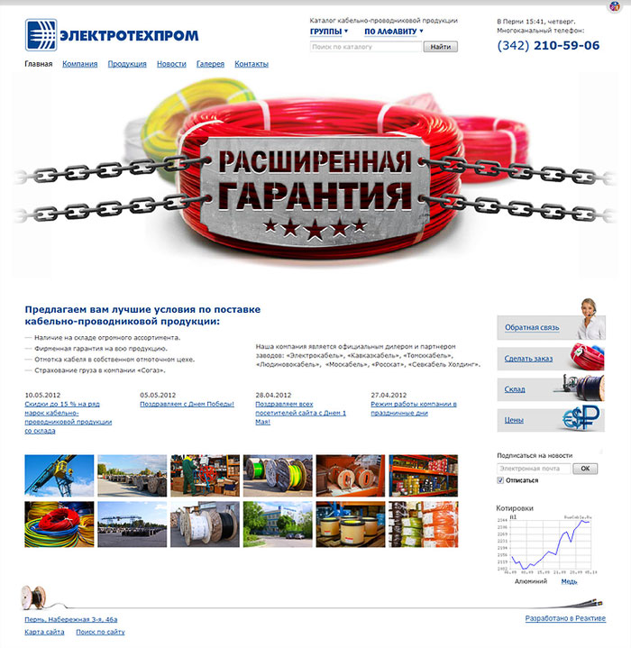 Создан каталог с невероятным количеством кабельной продукции. Показано наличие товара на складе. Дана информация о доставке. Контактная форма для запроса цен. Форма для заказа. Размещена подробная справочная информация. Разработан сервис новостной рассылки.