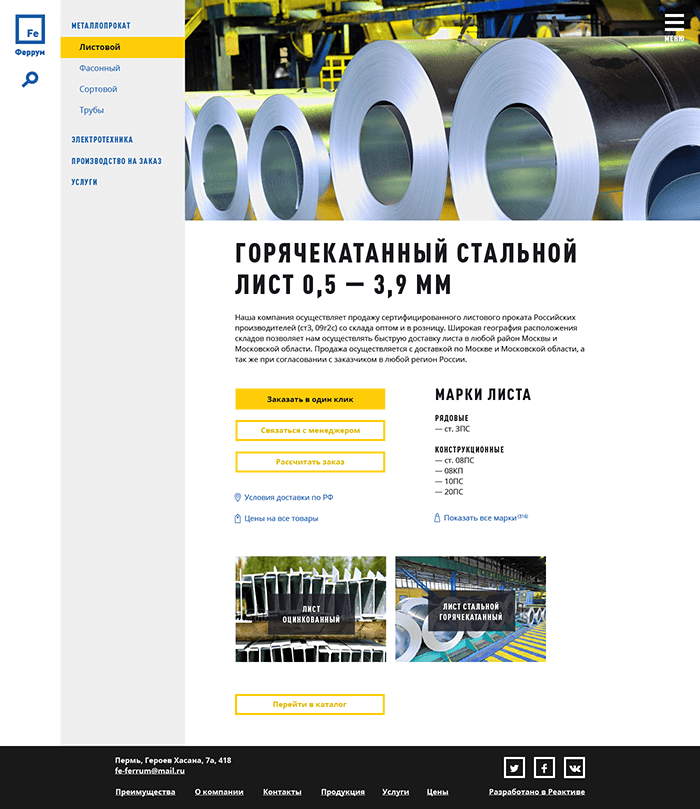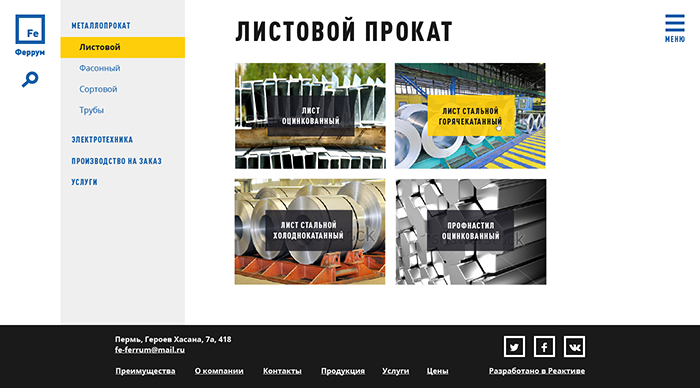 Собран «джентельменский набор» для подобных корпоративных проектов: дана информация о компании, подробный каталог продукции, услуги, цены и контактная информация.