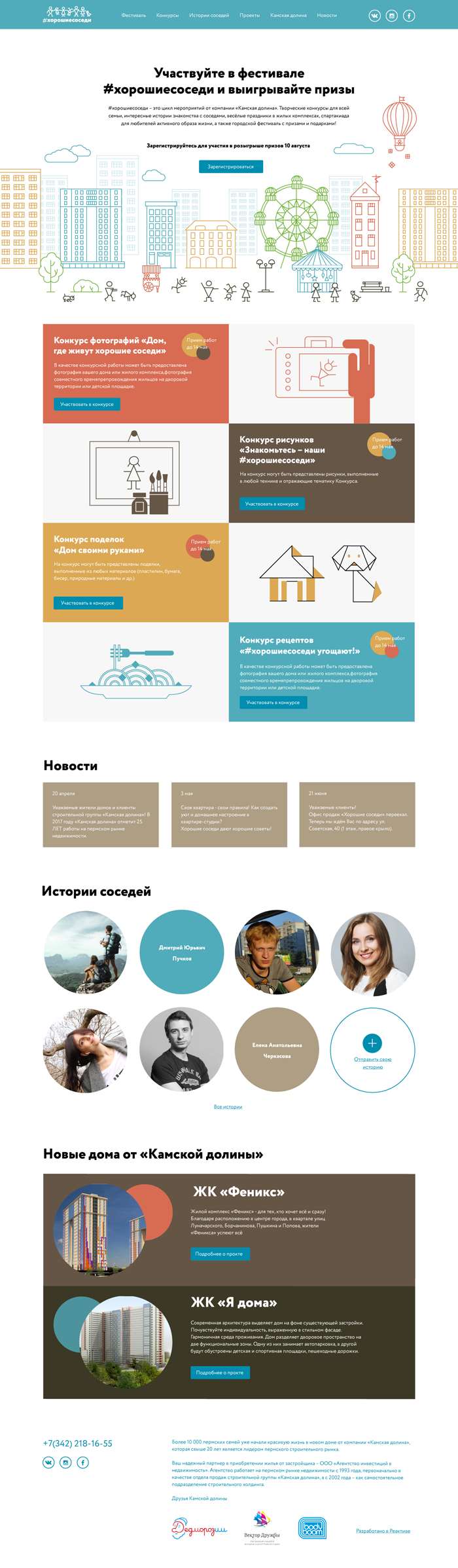 На сайте фестиваля мы рассказали о концепции, позвали посетителей сайта принять участие, представили конкурсы, рассказали о новостях, собрали истории соседства и не забыли о строительных проектах компании. Надеемся, что праздник удастся на славу!