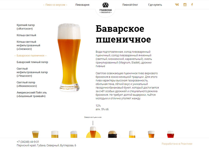 Каждый сорт производимого пива снабжен подробным описанием. Обратите внимание на навигацию по видам пива в нижней части экрана.