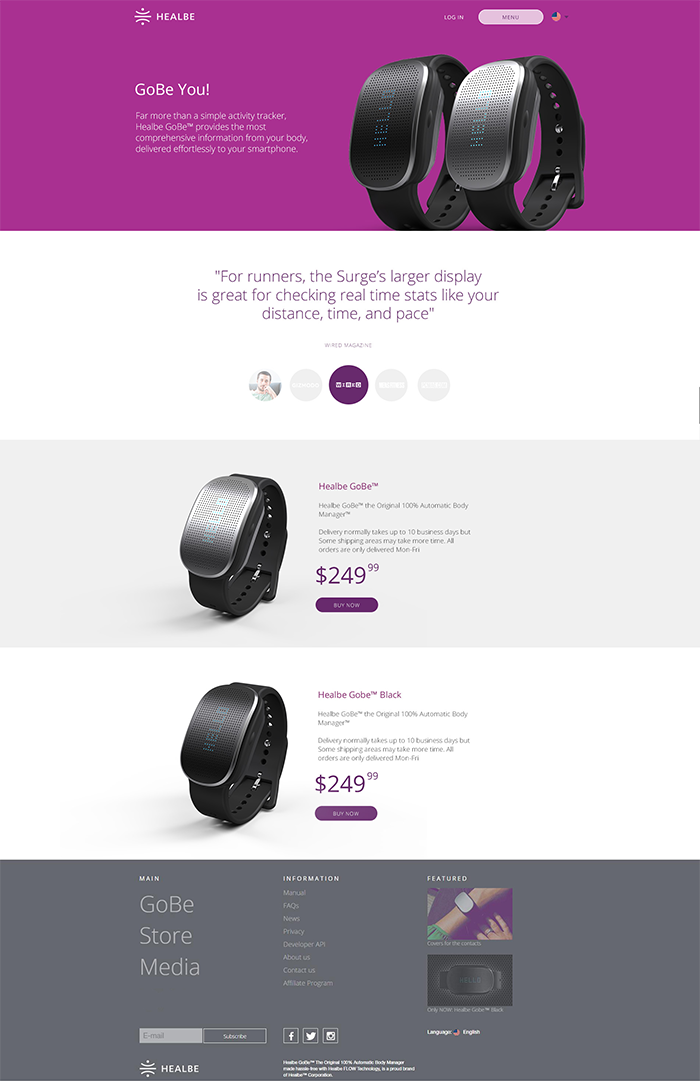 Обновить промо-сайт известного фитнес-трекера.