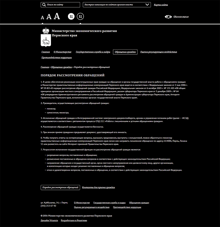 Кроме обычной версии, портал имеет версию для слабовидящих.