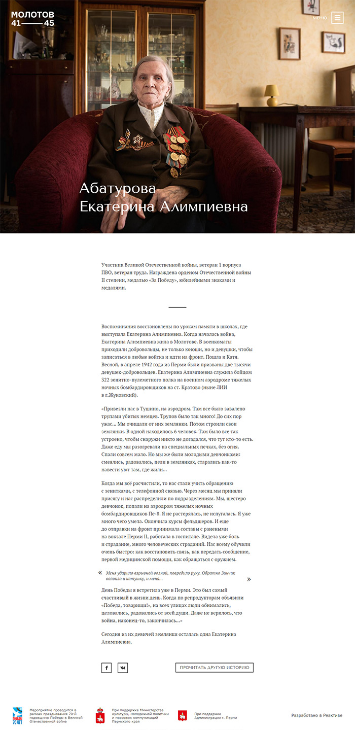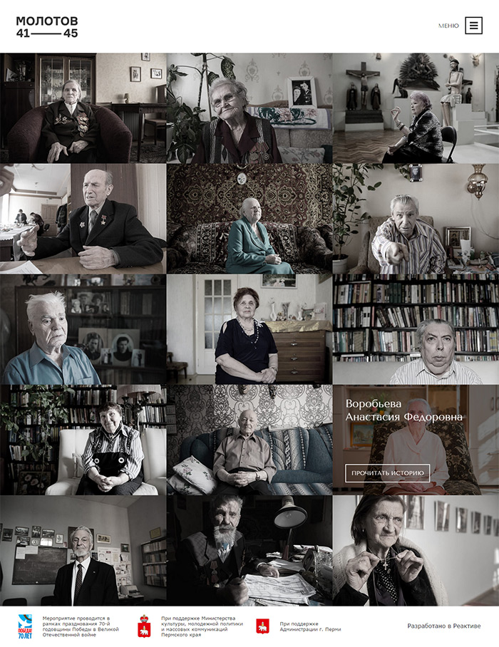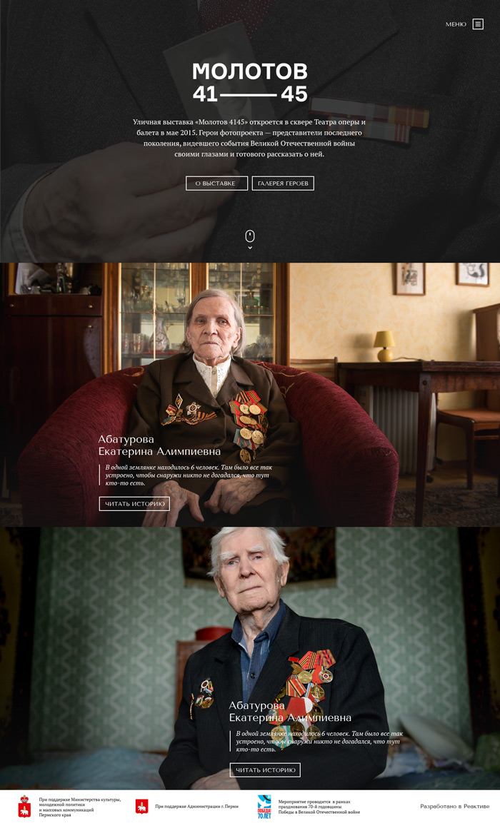 Проект «Молотов 41–45. 70 лет памяти» организован при поддержке: администрации Перми в рамках XVII городского конкурса социально значимых проектов «Город — это мы», главы г. Перми И.В. Сапко, Министерства культуры, молодежной политики и массовых коммуникаций Пермского края в рамках реализации мероприятия «Возрождение исторической памяти Пермского края».