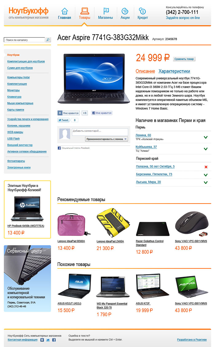Сеть магазинов по продаже компьютерной техники и комплектующих.