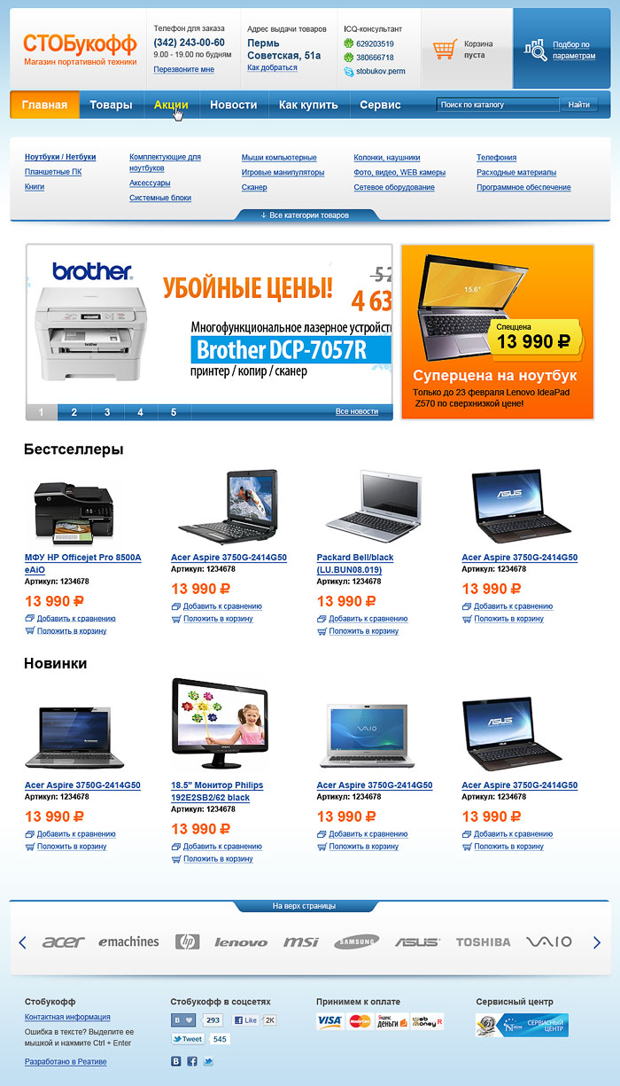 Сделать два интернет-магазина компьютерной техники для одной компании.