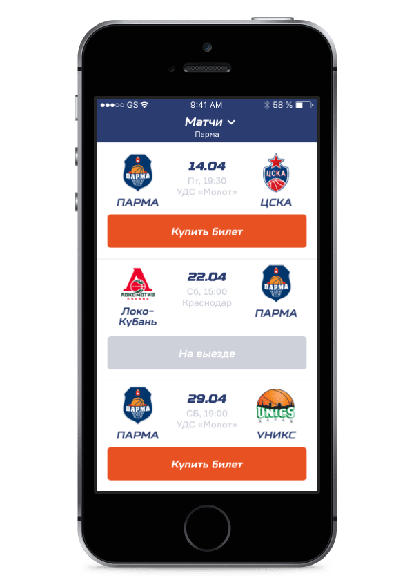 Было принято и решение по технологии: приложение будет нативным в обеих версиях операционных систем: для iOS и Android. В техническом задании мы описали требования к серверной части (с использованием текущей CRM системы, уже созданной для сайта клуба) и API, требования к интеграции с тремя внешними системами: продажи билетов, оплаты билетов и «Лиги ВТБ».