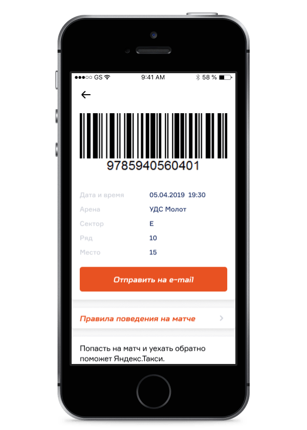 После покупки все приобретенные билеты на предстоящие матчи доступны в специальном разделе личного кабинета приложения. Их всегда можно посмотреть и, что самое главное, пройти на стадион с помощью штрих-кода на каждом из них.