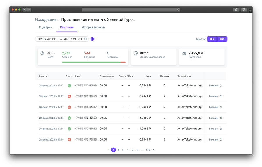 Особенность сервиса — ведение статистики о количестве отвеченных и сброшенных звонков и продолжительности разговора. В отличие от смс-оповещений сервис позволяет отследить реакцию болельщиков, оценить их заинтересованность в делах клуба, сделать прогноз посещаемости матчей. Просмотрев статистику, можно исключить из базы данных «холодные» номера, и как результат — сэкономить время и деньги.