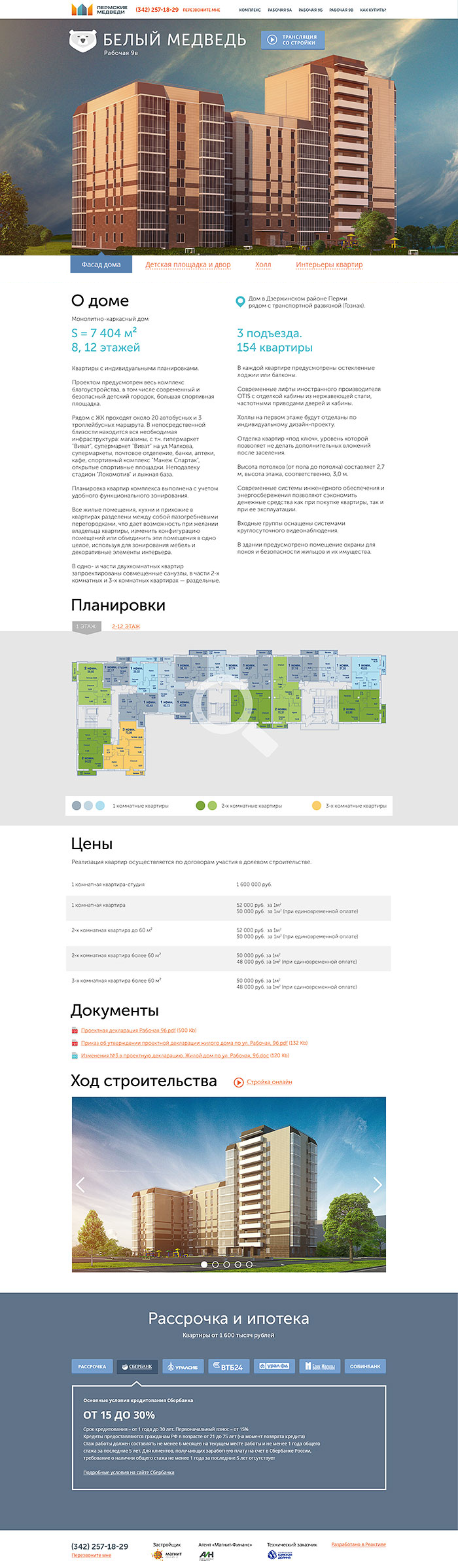 По каждому из трех домов комплекса есть все что необходимо покупателю для принятия решения: подробная информация, планировки, документы, фотографии хода строительства, а также