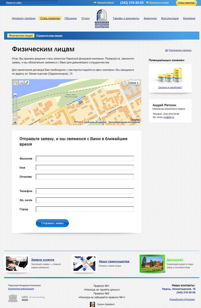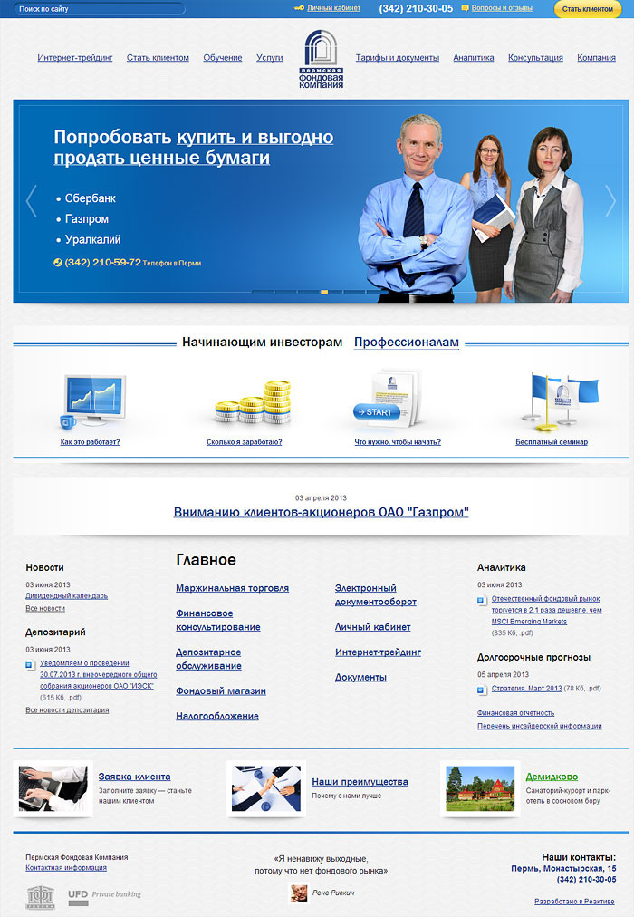 Сделать сайт фондовой компании для поиска новых клиентов и помощи существующим.