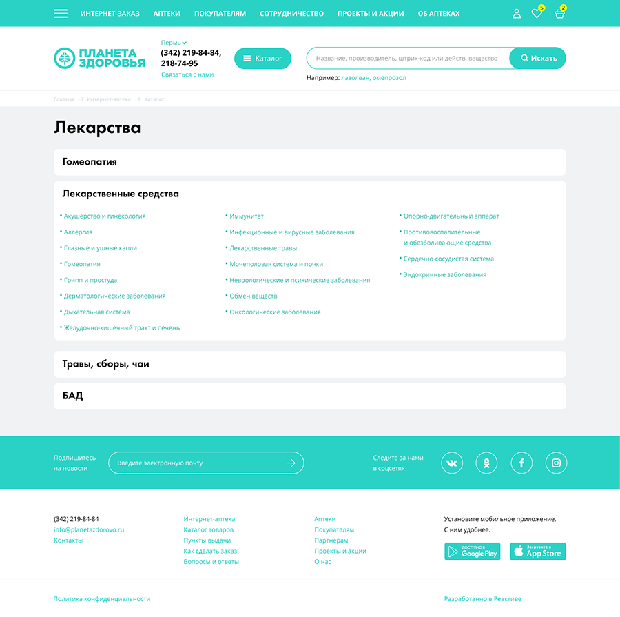Закон об онлайн торговле лекарственными препаратами вот-вот будет принят. Перспективы реализации товаров в интернете заставили большинство крупных аптечных сетей активно создавать и развивать свои ресурсы. Не стал отставать от общего тренда и наш клиент. Созданный несколько лет назад интернет-каталог аптеки не смог бы занять достойное место рядом с привлекательными, скоростными и функциональными конкурентами, поэтому руководством компании было принято решение о создании совершенно нового ресурса.