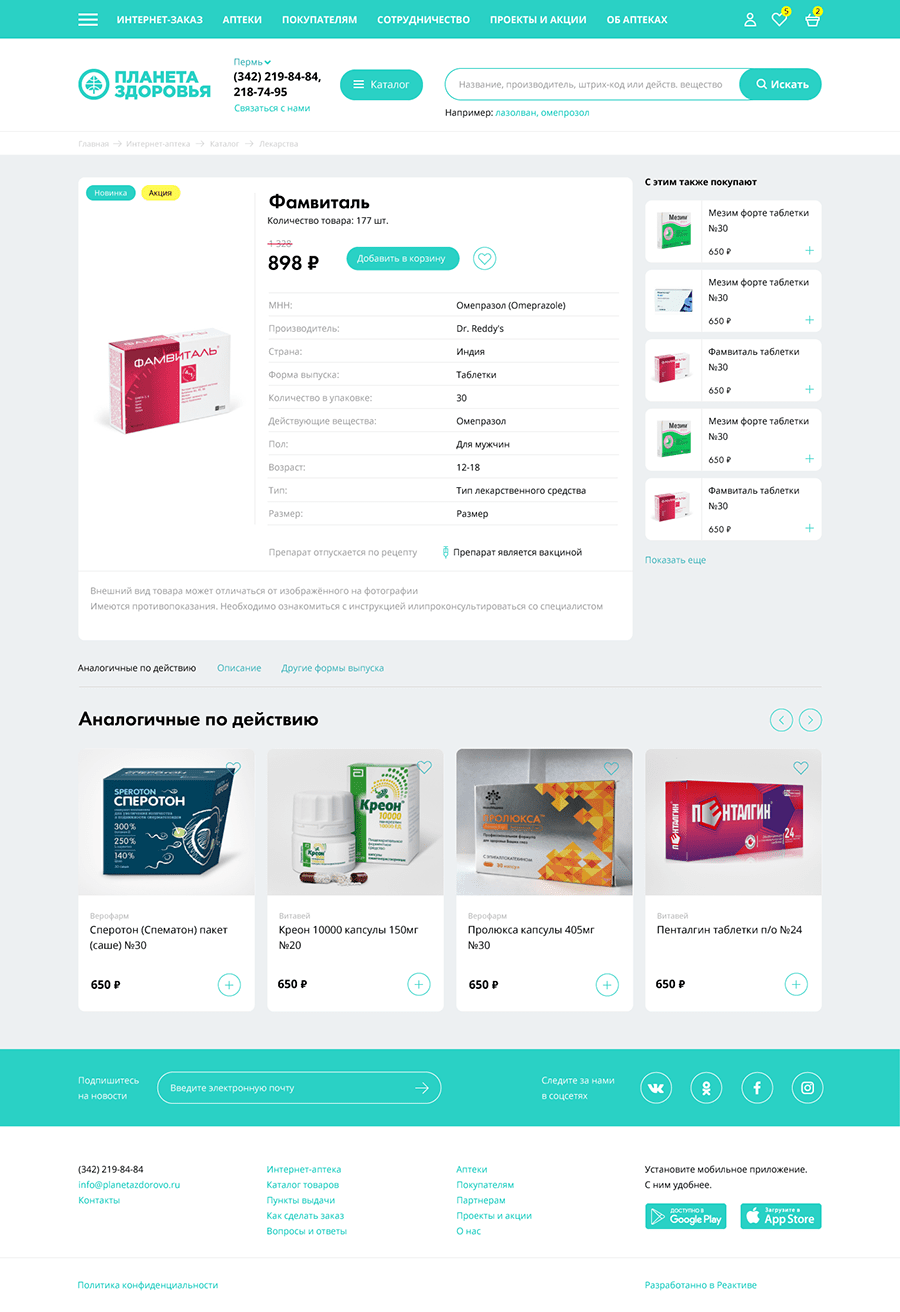 Карточка товара создана так, чтобы представить основную информацию (дозировка, действующие препараты, производитель, форма выпуска). При желании о каждом препарате можно получить подробную информацию из его инструкции.