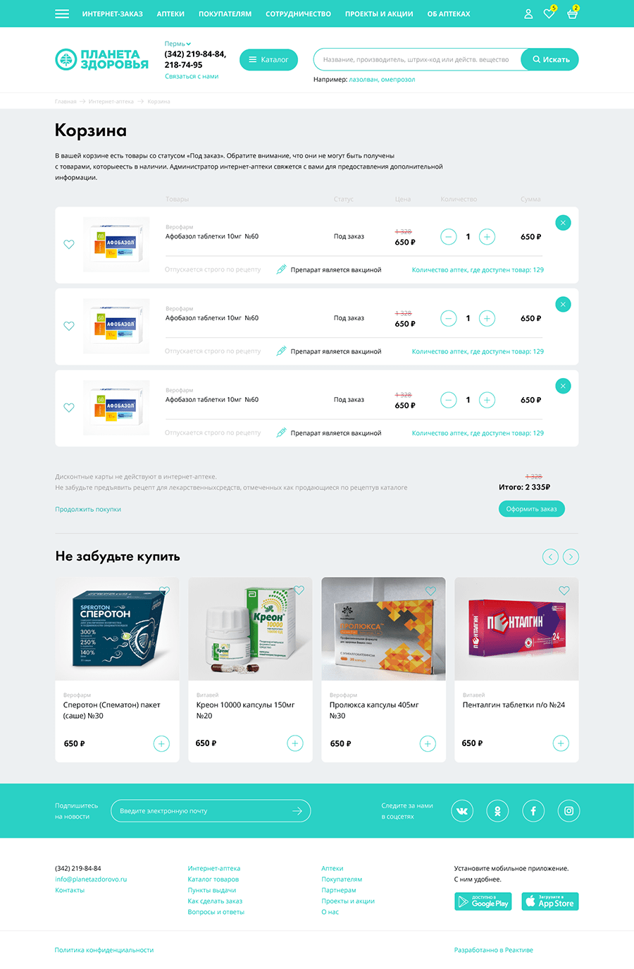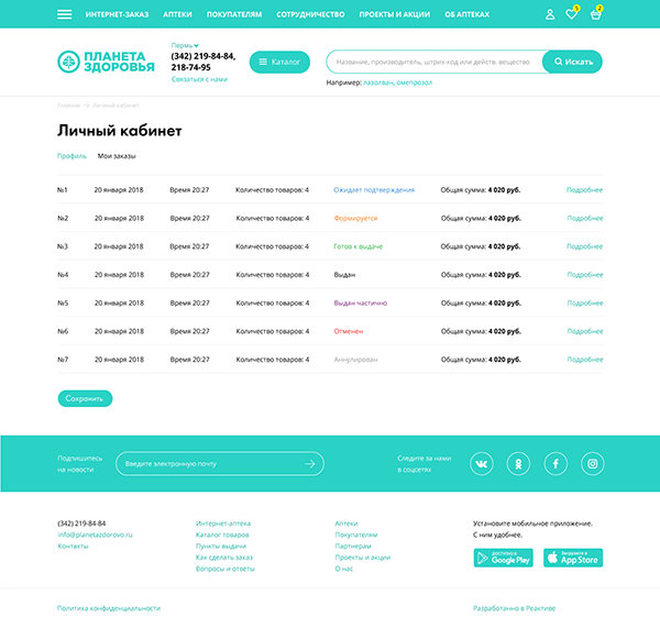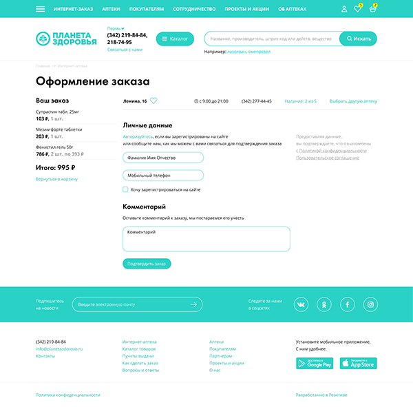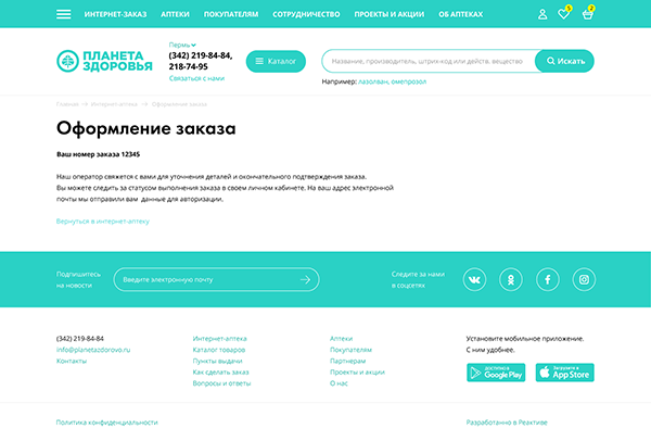 Создать сайт сети аптек, организовать онлайн заказ товаров, реализовать интеграцию с внутренней системой заказчика.