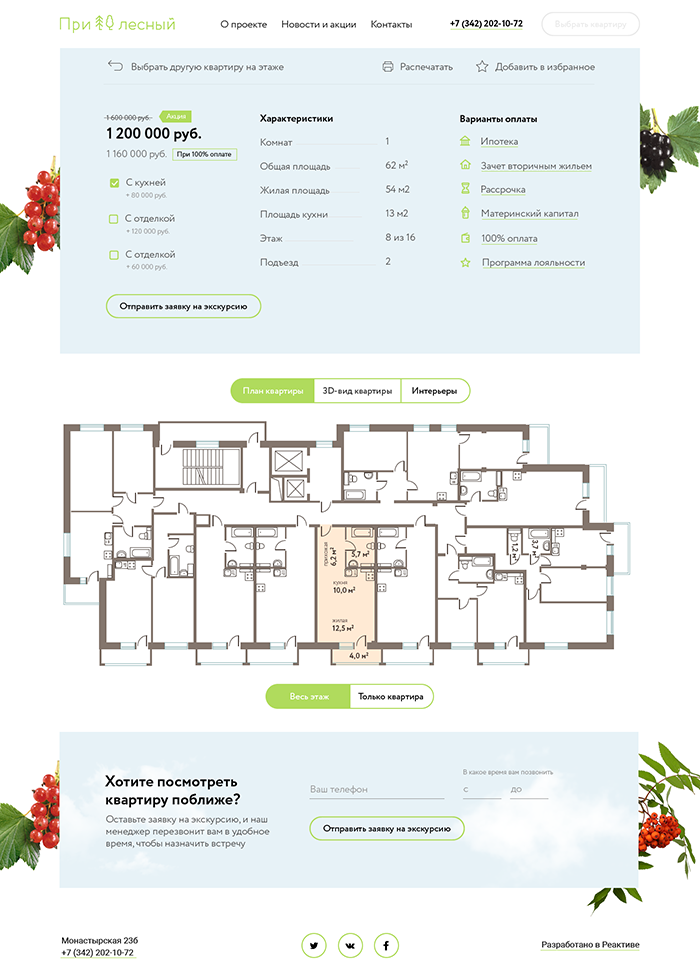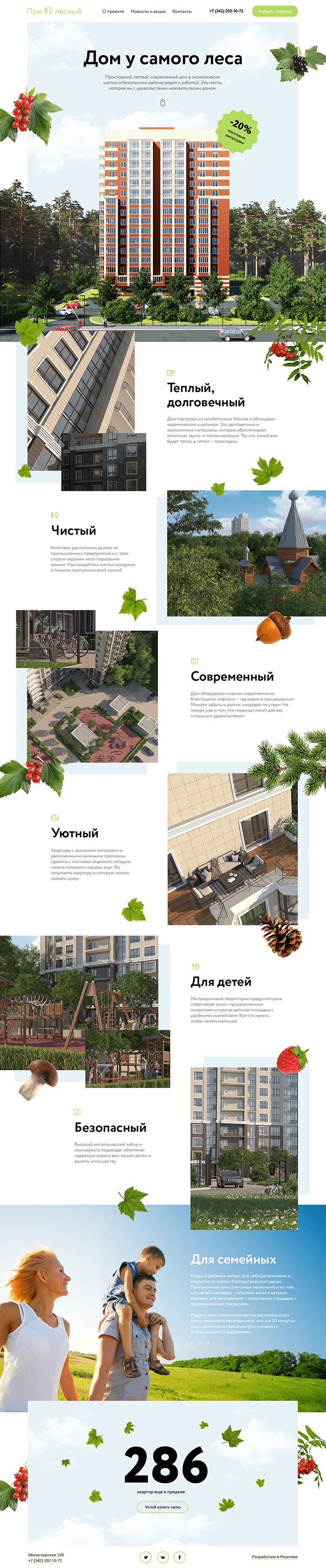 Разработать экологичный и стильный промо-сайт для строящегося жилого комплекса в Перми.