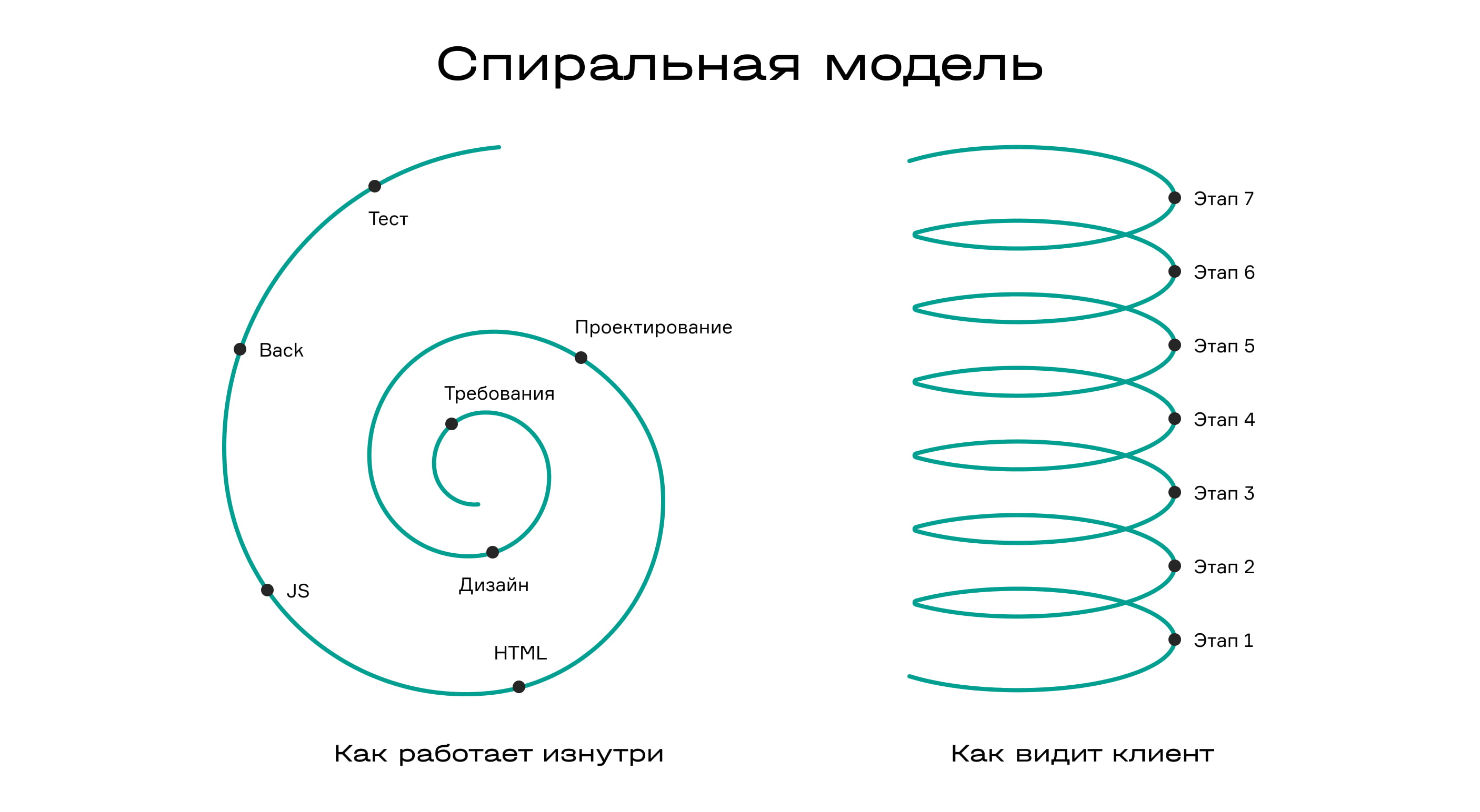 Весь процесс строился на спиральной и инкрементной методологии с элементами RAD. Это значит, что разработку каждого нового модуля запускали в работу по мере готовности технического задания. Разделили команду на ответственных разработчиков и запараллелили создание этих модулей. По готовности каждой функциональности показывали её заказчику, а затем дорабатывали по замечаниям и пожеланиям.