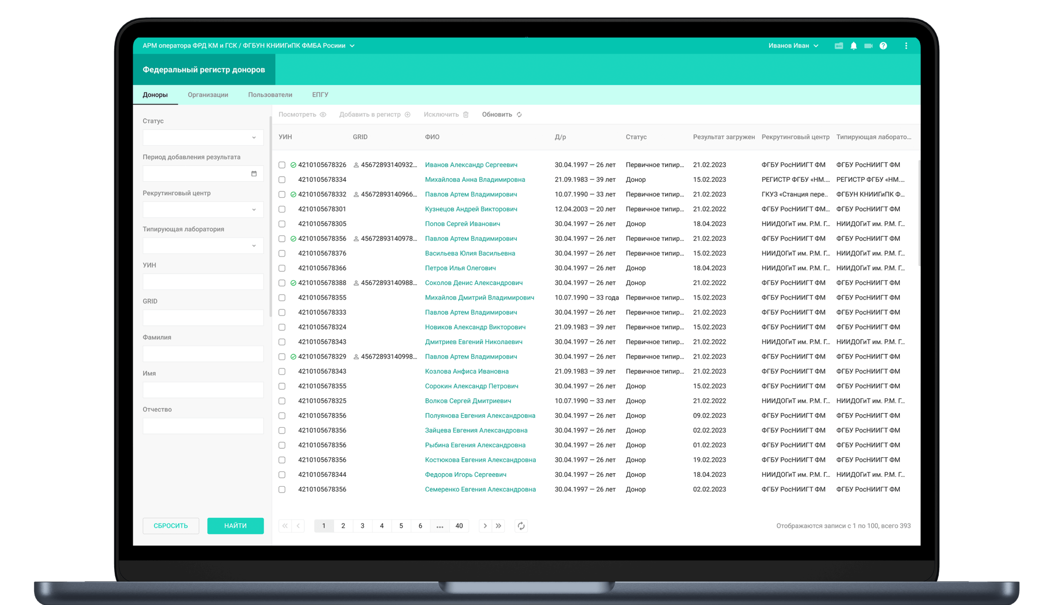 - перенесли в систему ранее накопленные данные о донорах и реципиентах