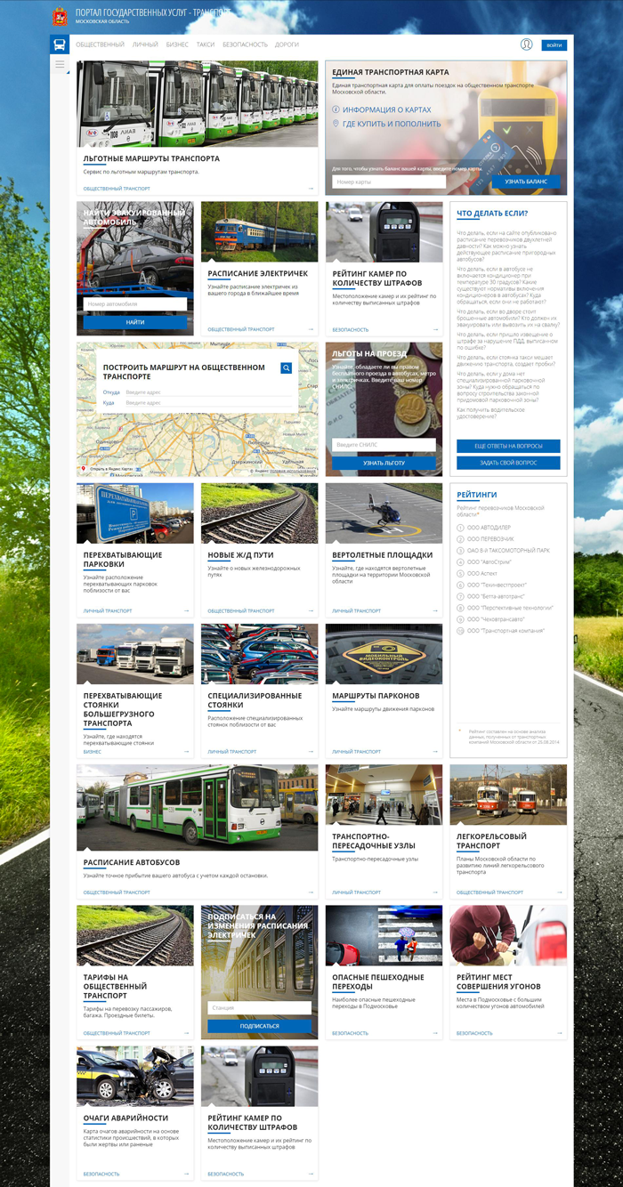 Техническая поддержка сайтов «Дома Подмосковья» и «Транспорт Московской области», создание новых разделов и возможностей.