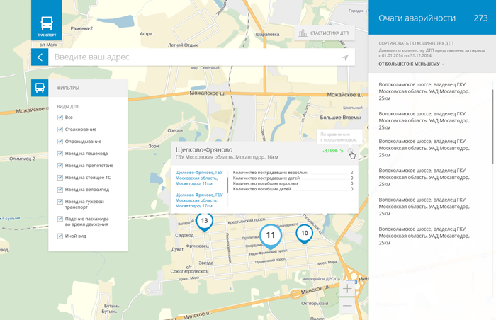 - на интерактивной карте Московской области отметили места совершения дорожно-транспортных происшествий с информацией о каждом из них