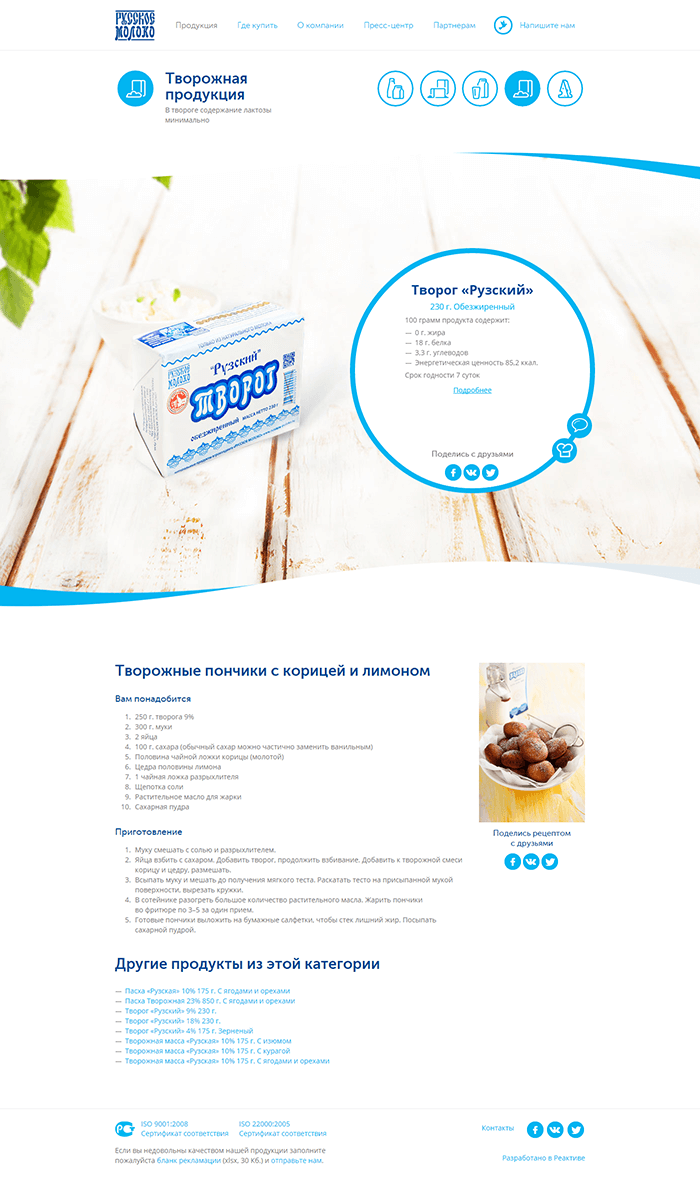 Создать сайт для продвижения продукции бренда «Рузское молоко».