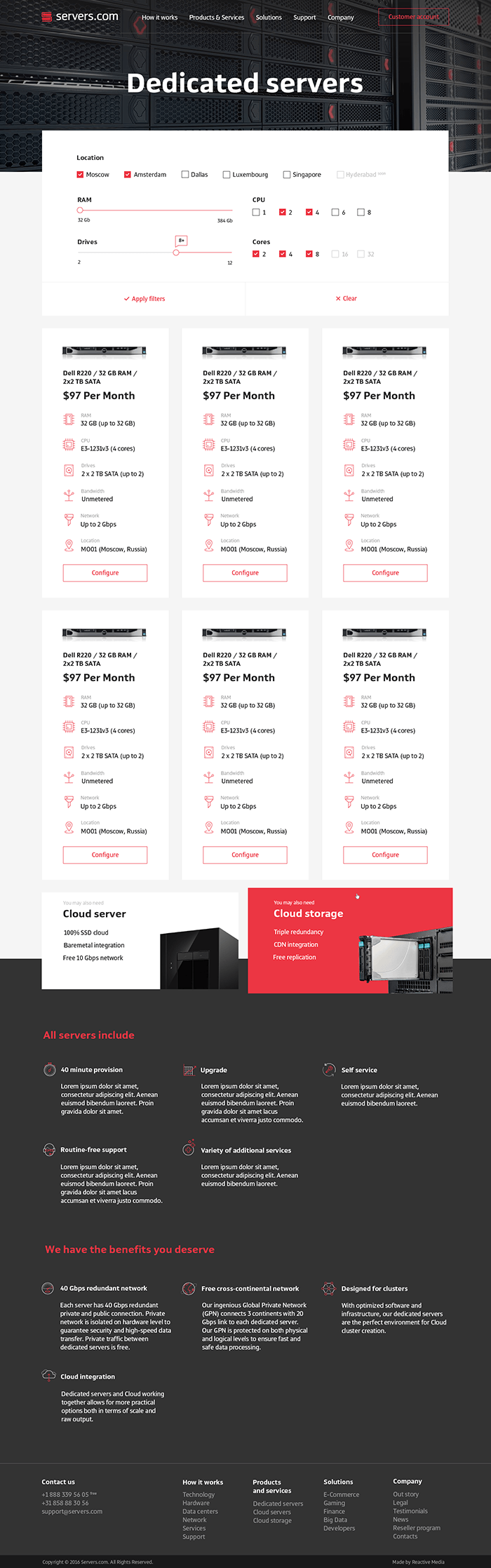 Servers.ru — молодая и динамично развивающаяся компания. Servers.ru была образована в 2014 году открытием двух дата-центров в Далласе и Амстердаме, на сегодняшний день компания имеет 6 дата-центров по всему миру, а среди наших клиентов — ведущие компании в области игровой, веб и мобильной разработки.
