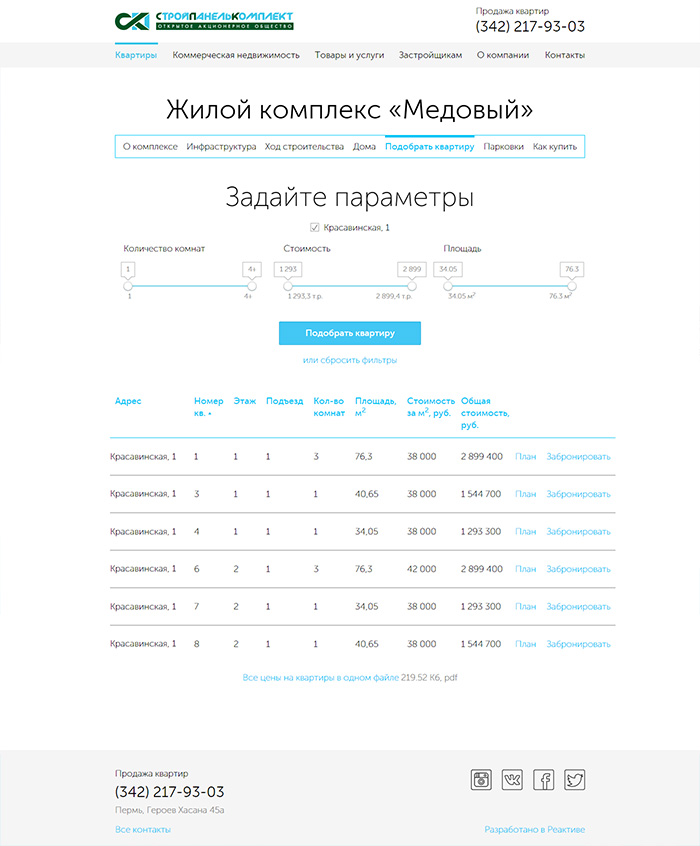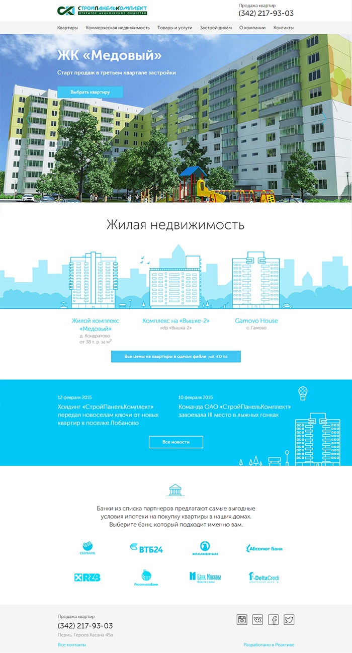 Разработать сайт большой строительной компании, который будет помогать продавать квартиры и офисы в строящихся домах, а также привлечет новых партнеров из числа строительных компаний и агентств недвижимости.