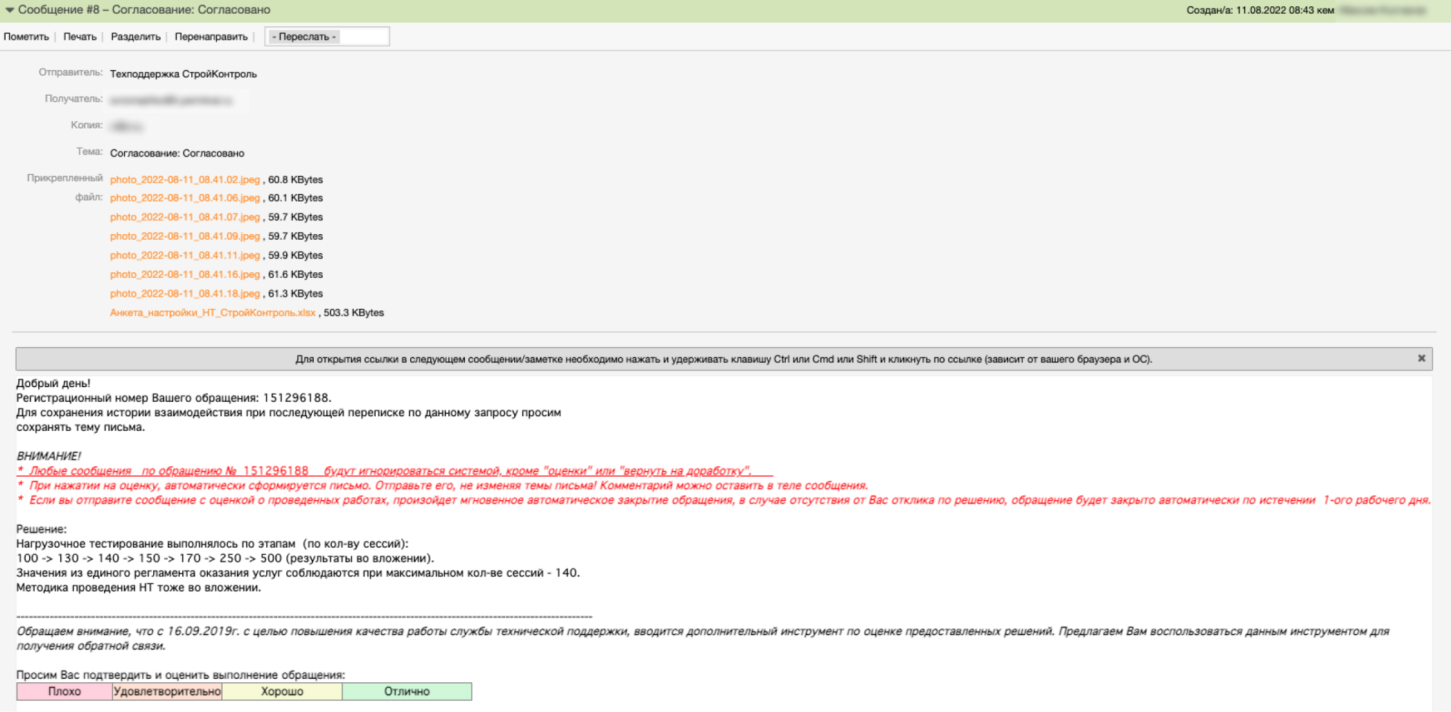 Каждое регламентное мероприятие заканчивалось фиксацией результата в Системе управления инцидентами.