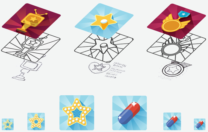 Нарисовать большой комплект иконок для мобильного приложения.