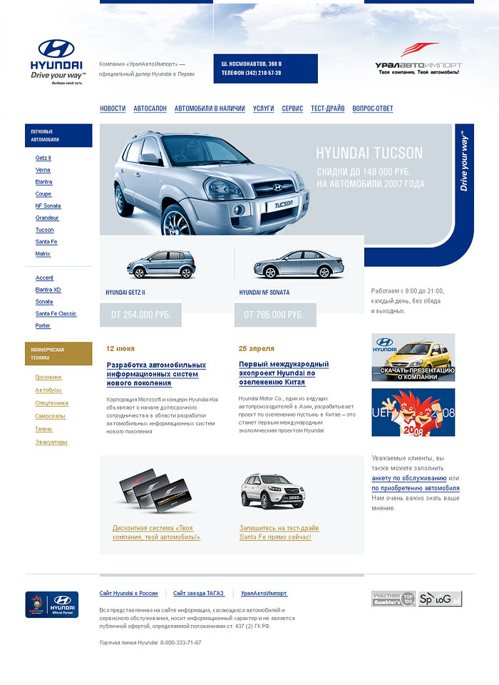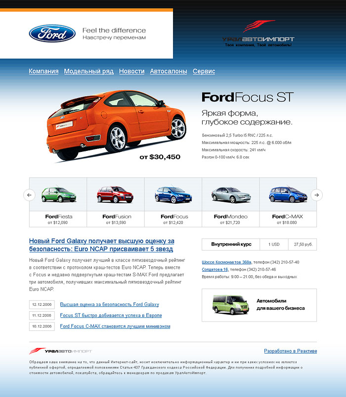 Компания «УралАвтоИмпорт» — это крупный мультибрендовый автодилер. Он предлагает автомобили марок Citroen, Skoda, Ford, Nissan, Mitsubishi, Hyundai, Land Rover, Jaguar, Infiniti, а также услуги сервиса, кузовного ремонта и trade-in. Мы начали работать с УралАвтоИмпортом в 2003 году, сделали почти два десятка проектов и все это время непрерывно занимаемся их наполнением и улучшением.