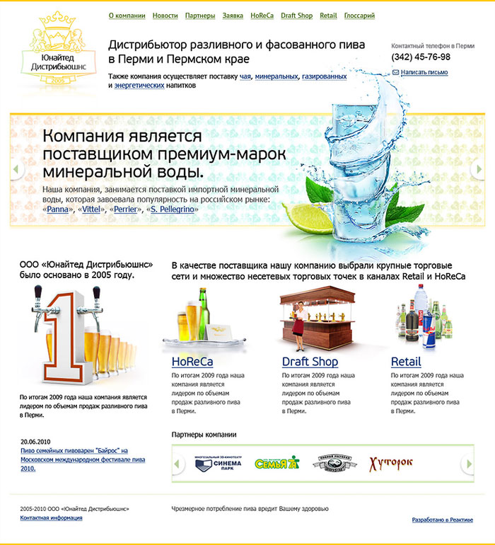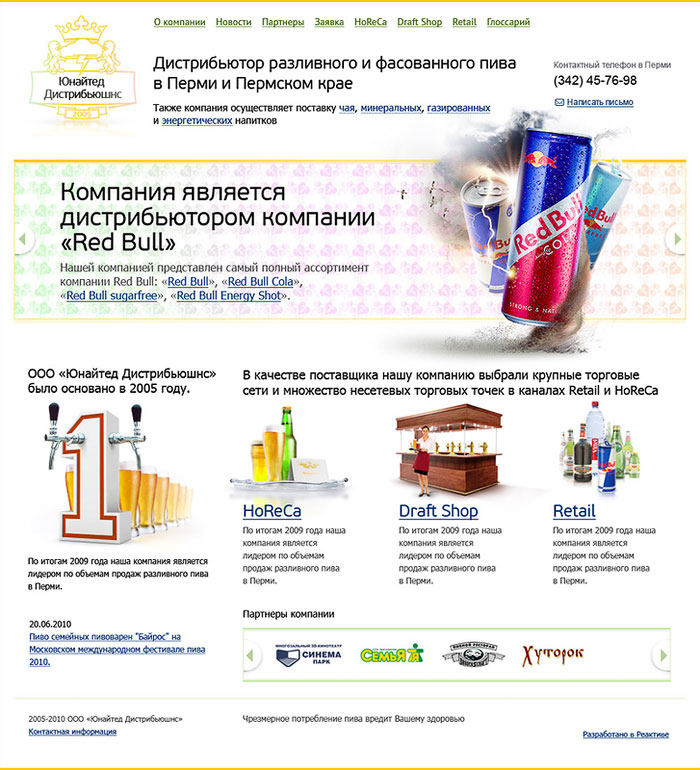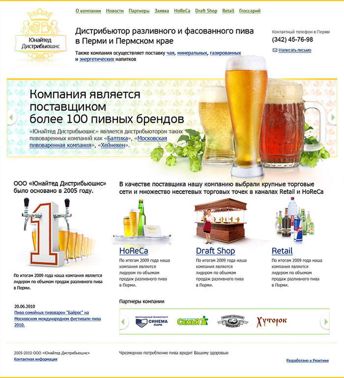 Комплексное обеспечение индустрии гостеприимства и розничных предприятий пивом российского и импортного производства, безалкогольными и энергетическими напитками, элитными сортами чая и кофе.