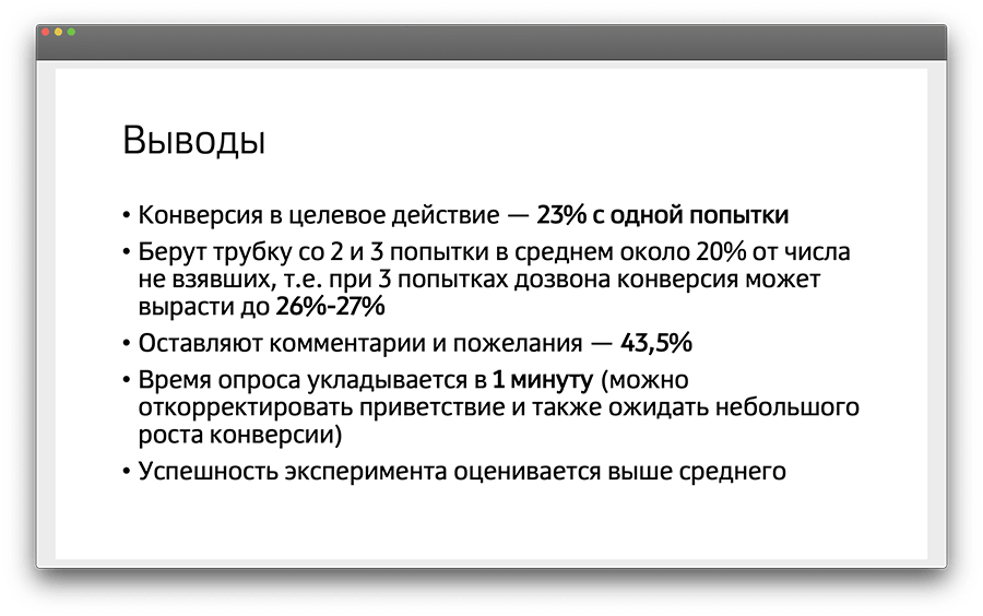 Обзвон был экспериментальным для этой компании. Мы оцениваем его успех выше среднего.