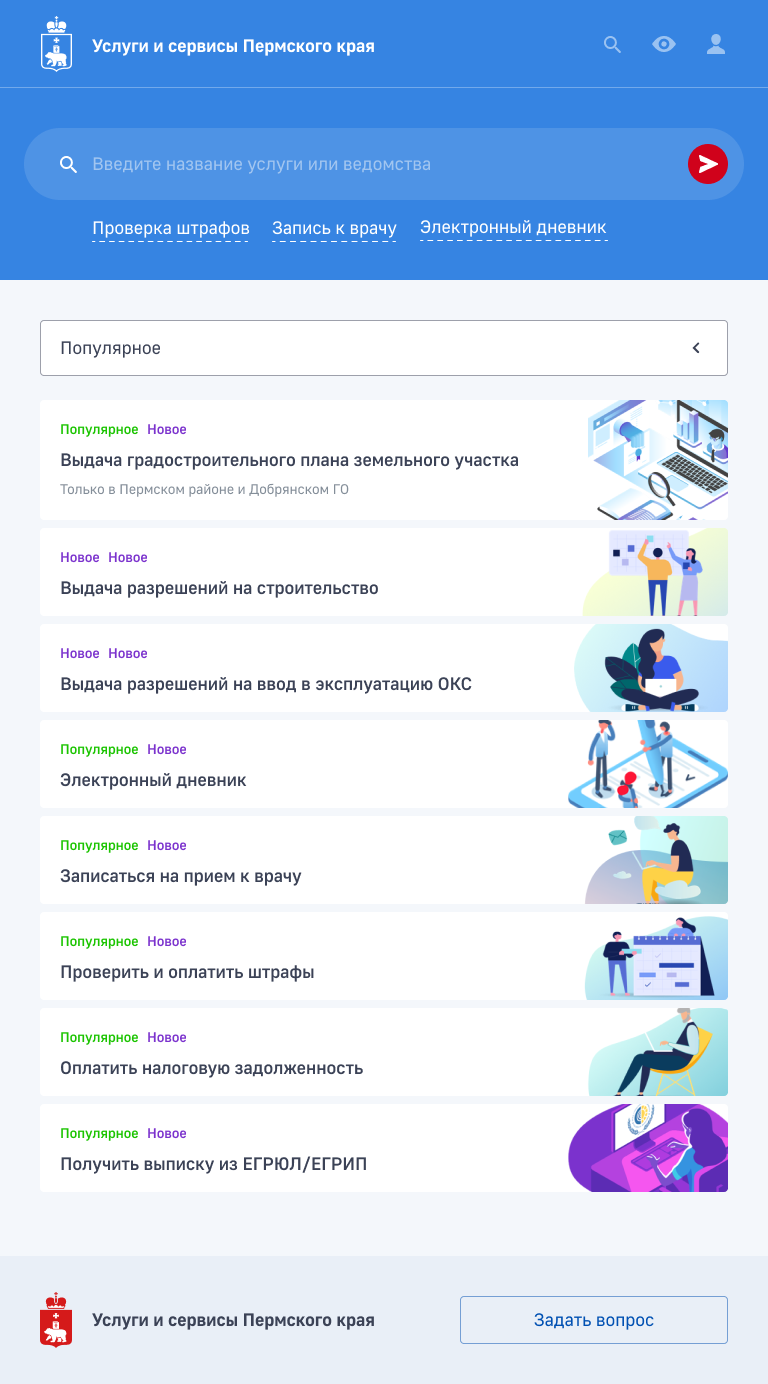 Разработали портал муниципальных услуг Пермского края, на котором жители Прикамья могут подать заявки на получение услуги в онлайн-режиме.